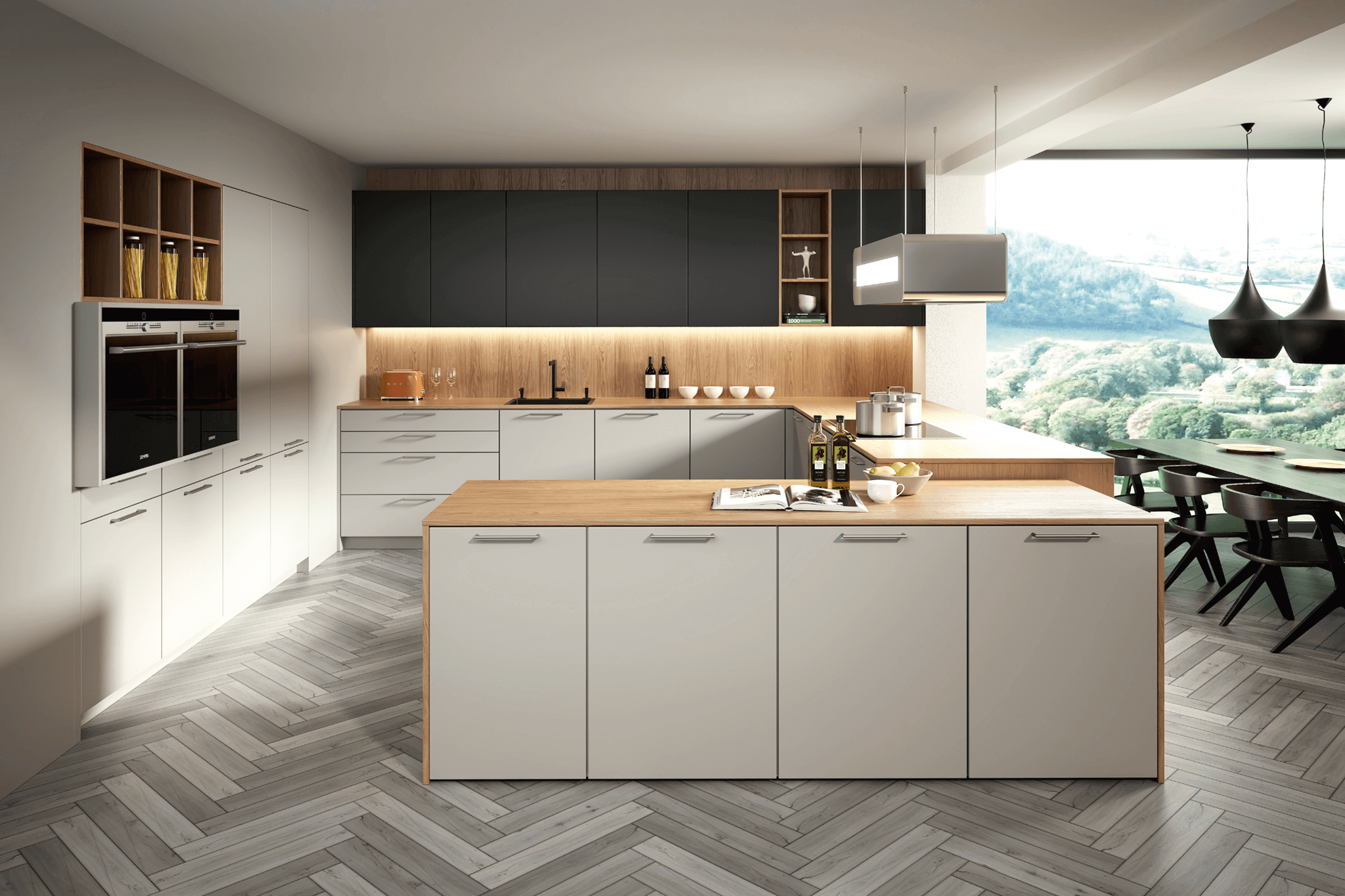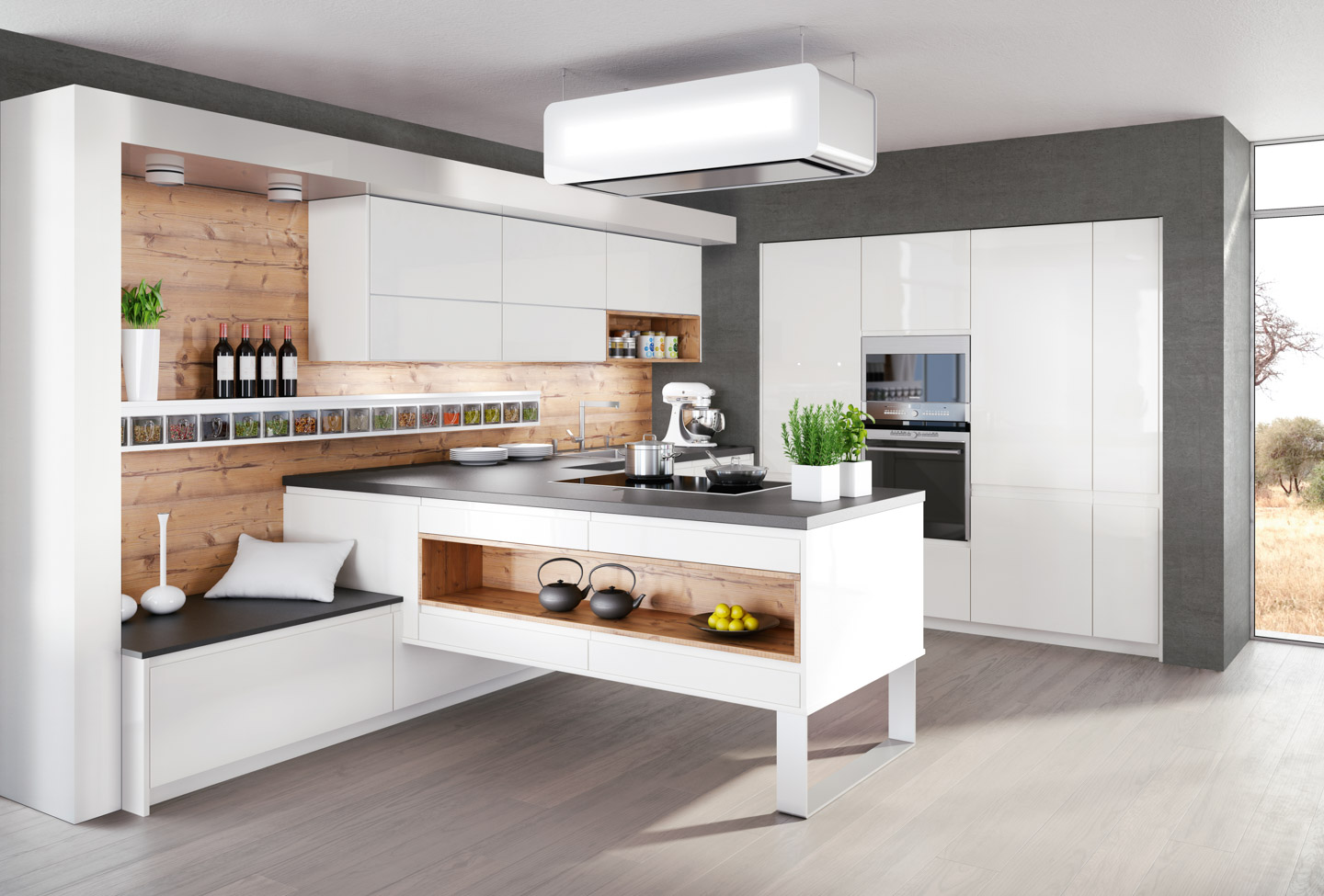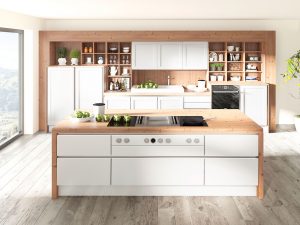 Model kuhinje Silbermond združuje individualne rešitve, najvišjo kakovost in futurističen dizajn. Idealen je za postavitev kot kuhinja z otokom, na voljo pa je tudi v drugih izvedbah, ki povsem ustrezajo vašim željam in specifikam vašega prostora. Ličnice brez ročajev (okrasna ročajna letev v barvi Alu, Fliederweiß, Magnolie, Cerros, Anthrazit) v povezavi s prvovrstnimi steklenimi elementi omogočajo, da so vaše dragocenosti v kuhinji Silbermond vidne. Spretno zasnovana kuhinja z otokom je tako prava lepotica in vredna pogleda.